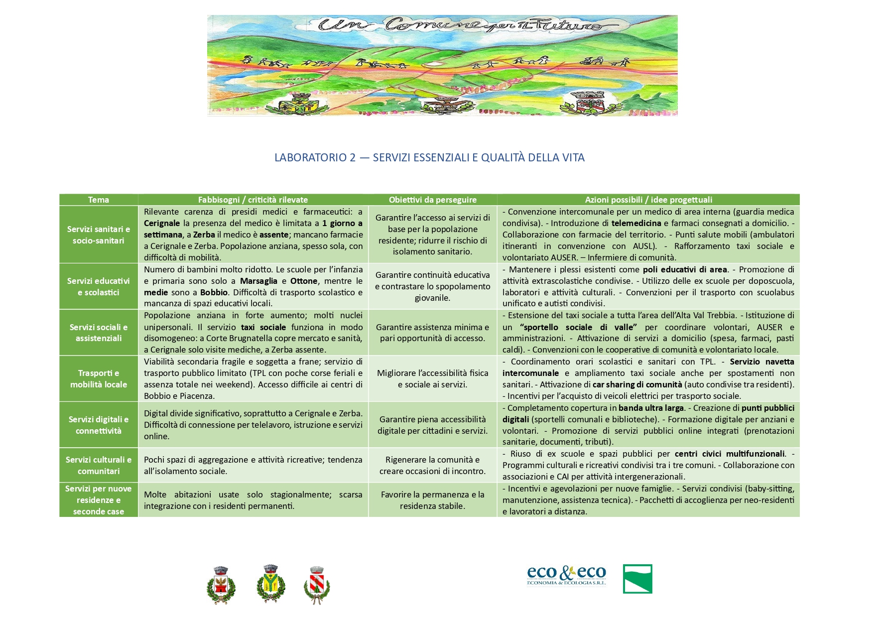 Comuni di Cerignale, Corte Brugnatella e Zerba — con il supporto tecnico di eco&eco