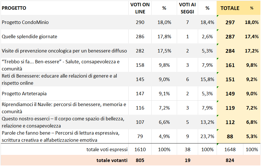 E' necessario esprimere il voto a due progetti. Il voto espresso a un solo progetto non sarà conteggiato