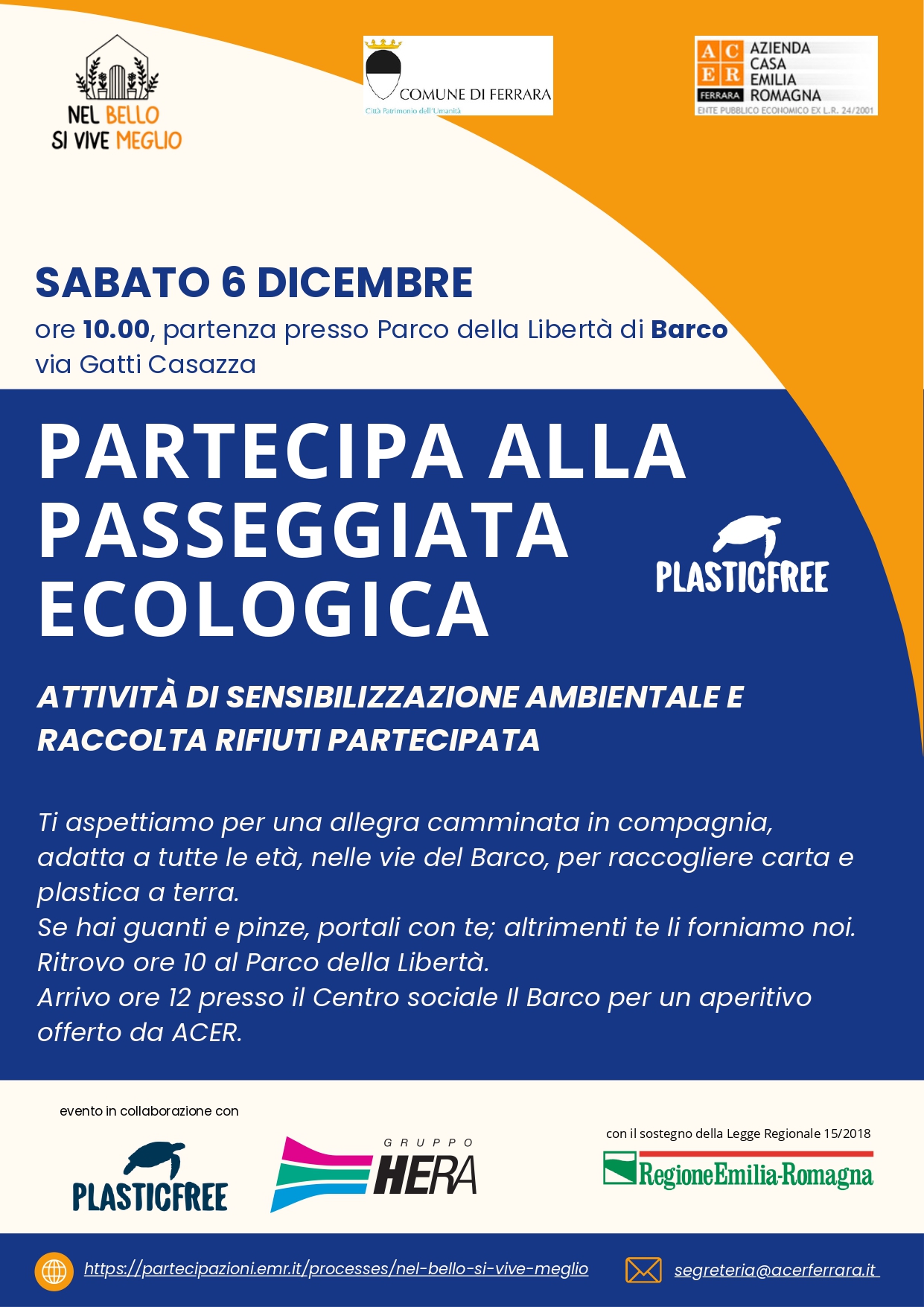 Grande successo per la Passeggiata Ecologica al Barco, organizzata nell’ambito del percorso partecipativo “Nel bello si vive meglio” promosso da ACER Ferrara, con il supporto di Plastic Free Onlus e delle realtà associative del territorio.